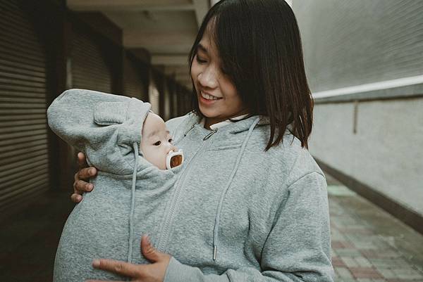 簡單來說就是 同時可以讓媽媽跟寶寶都保暖的外套