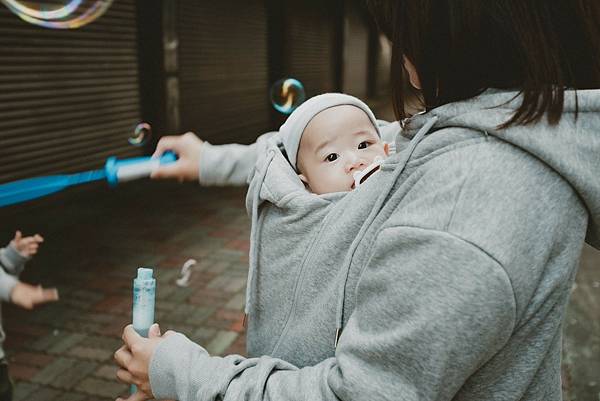 揹帶跟袋鼠媽媽親子外套都是很好的配件