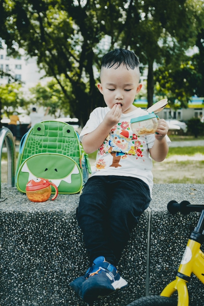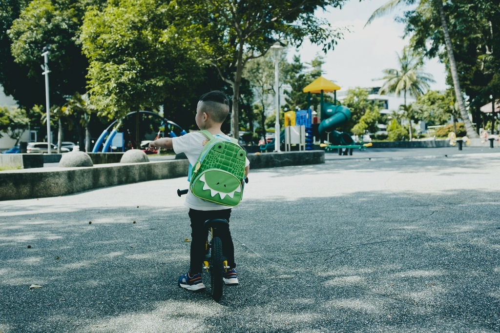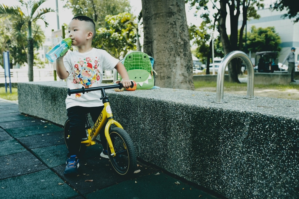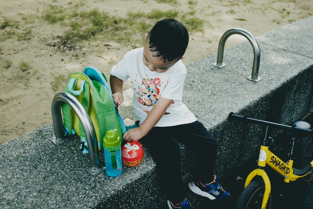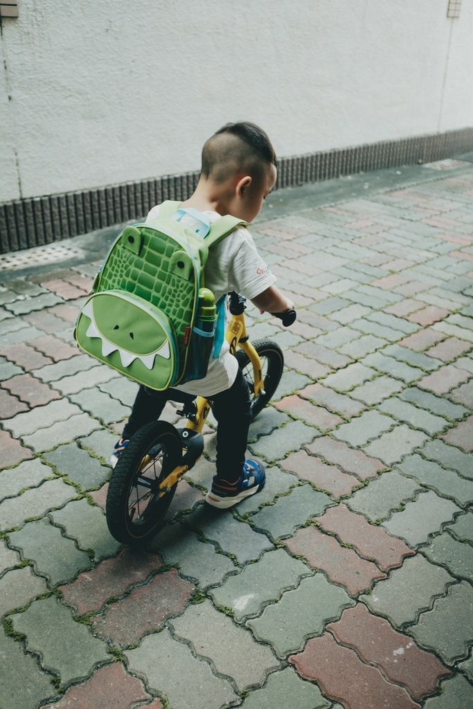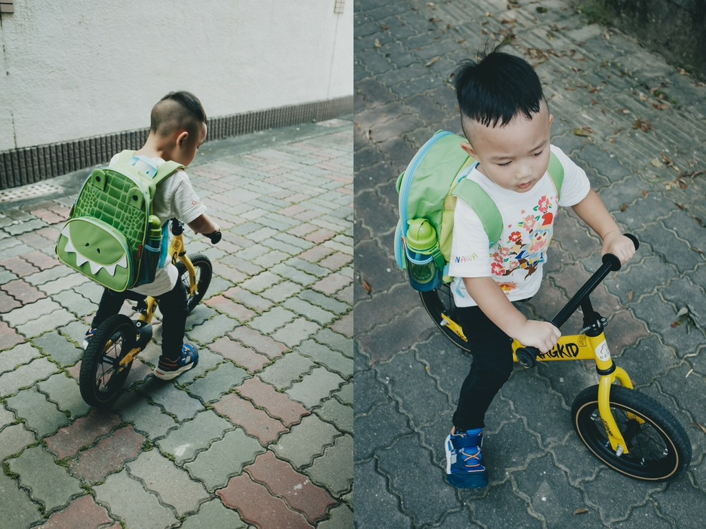 看他滿足的揹著包包、騎著滑步車真的好幸福啊!