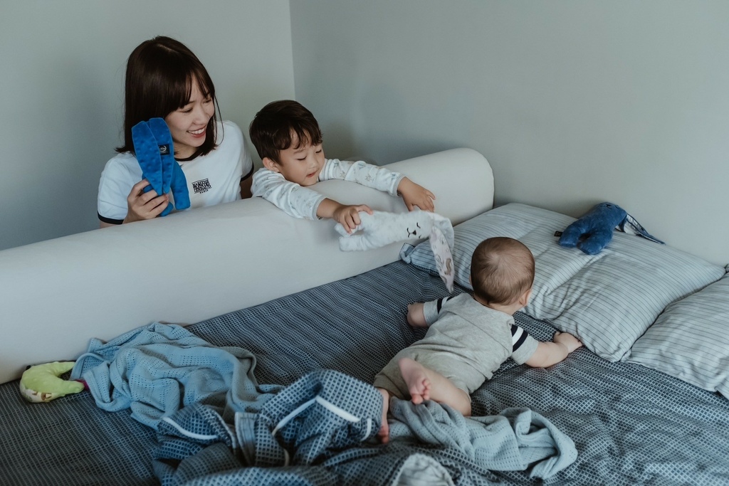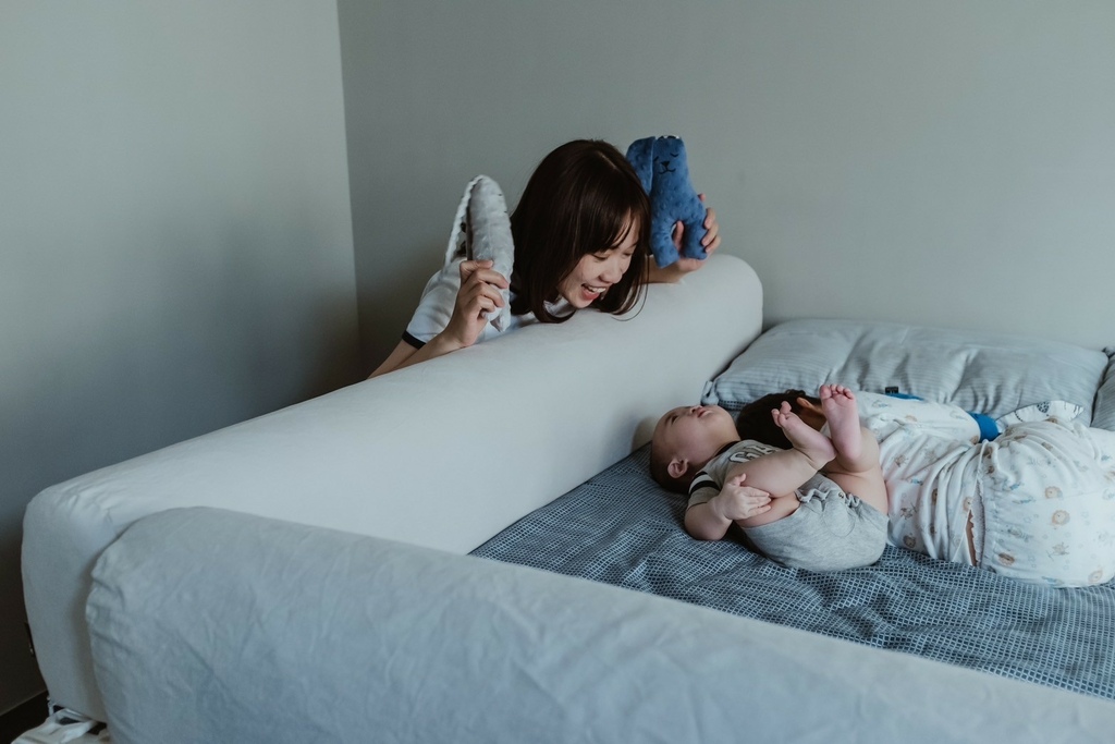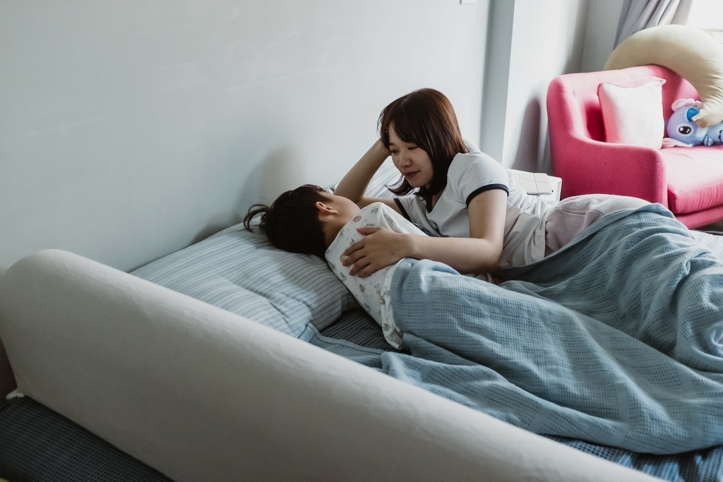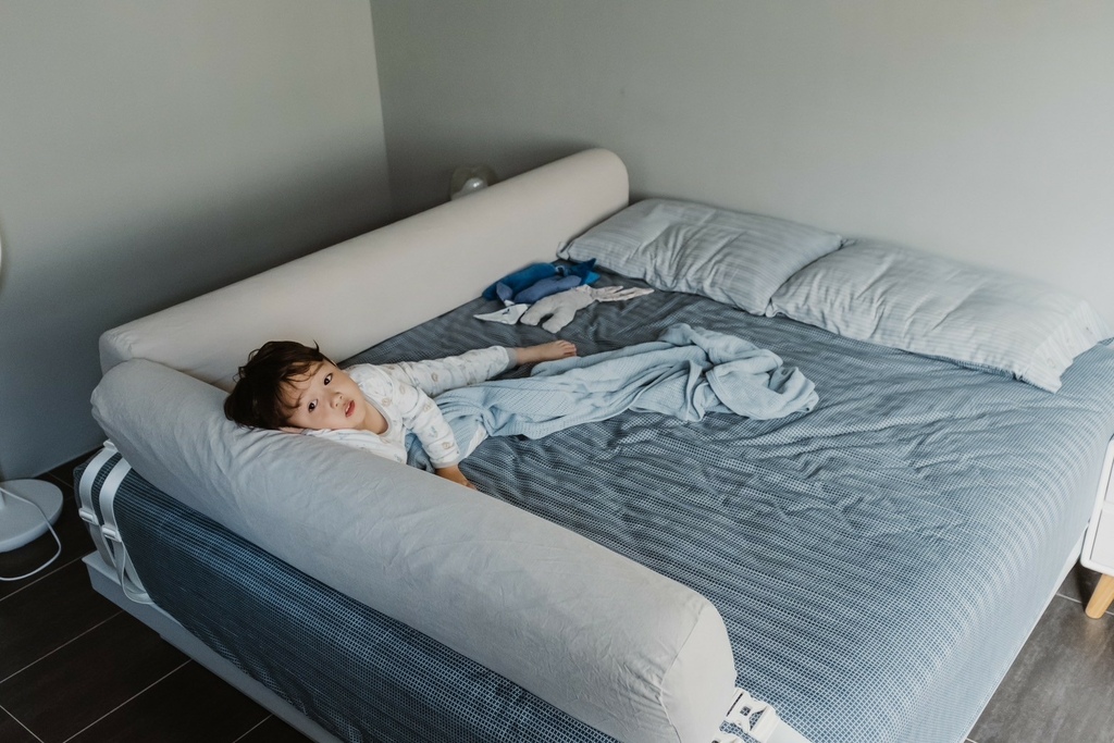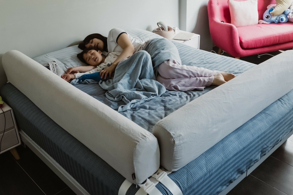 有了床圍之後媽媽每天都答應跟他一起睡覺
