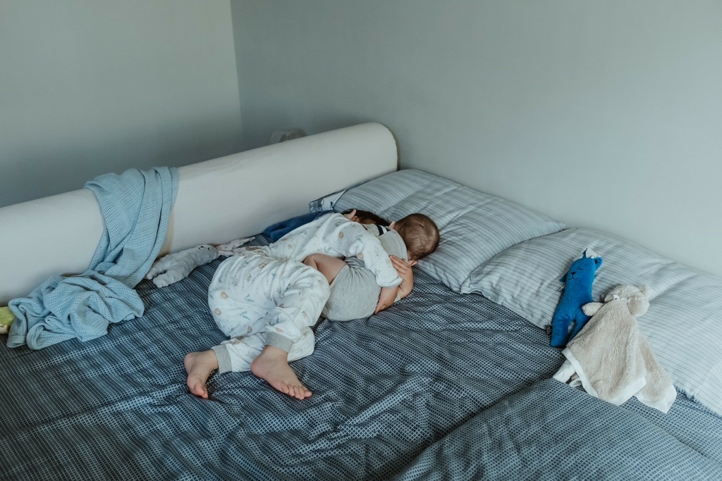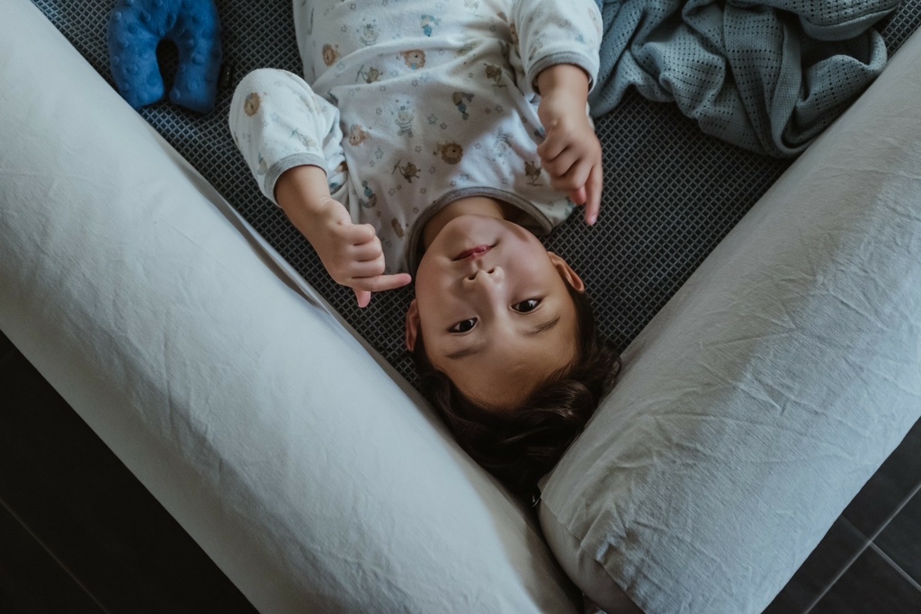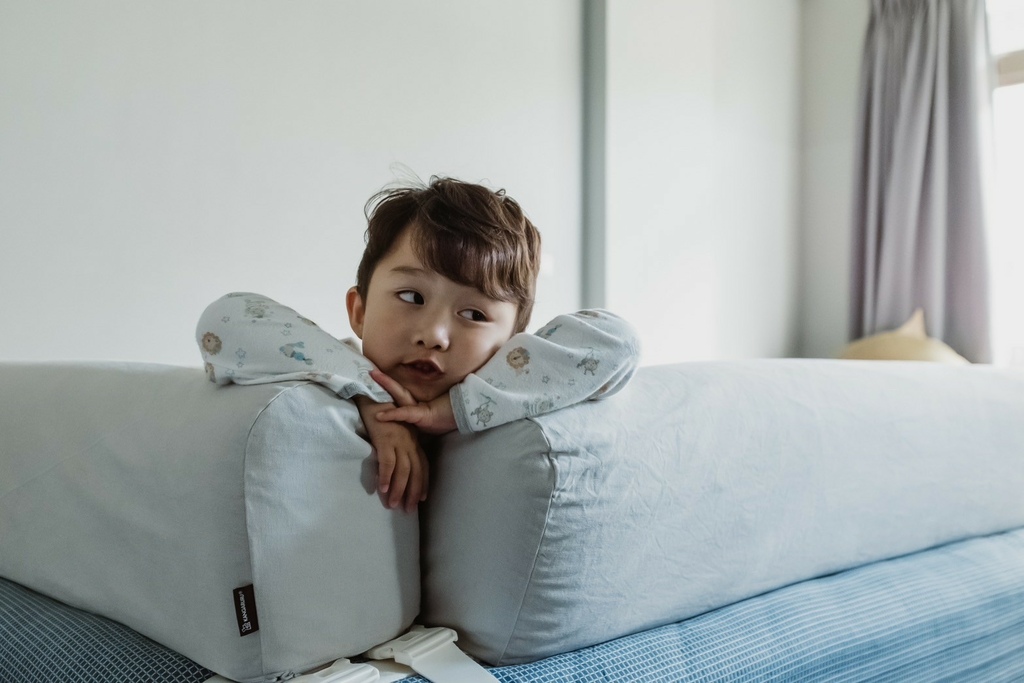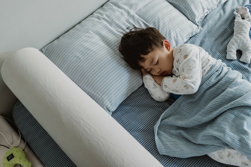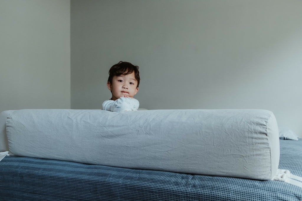 有了床圍之後媽媽每天都答應跟他一起睡覺