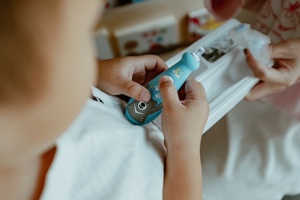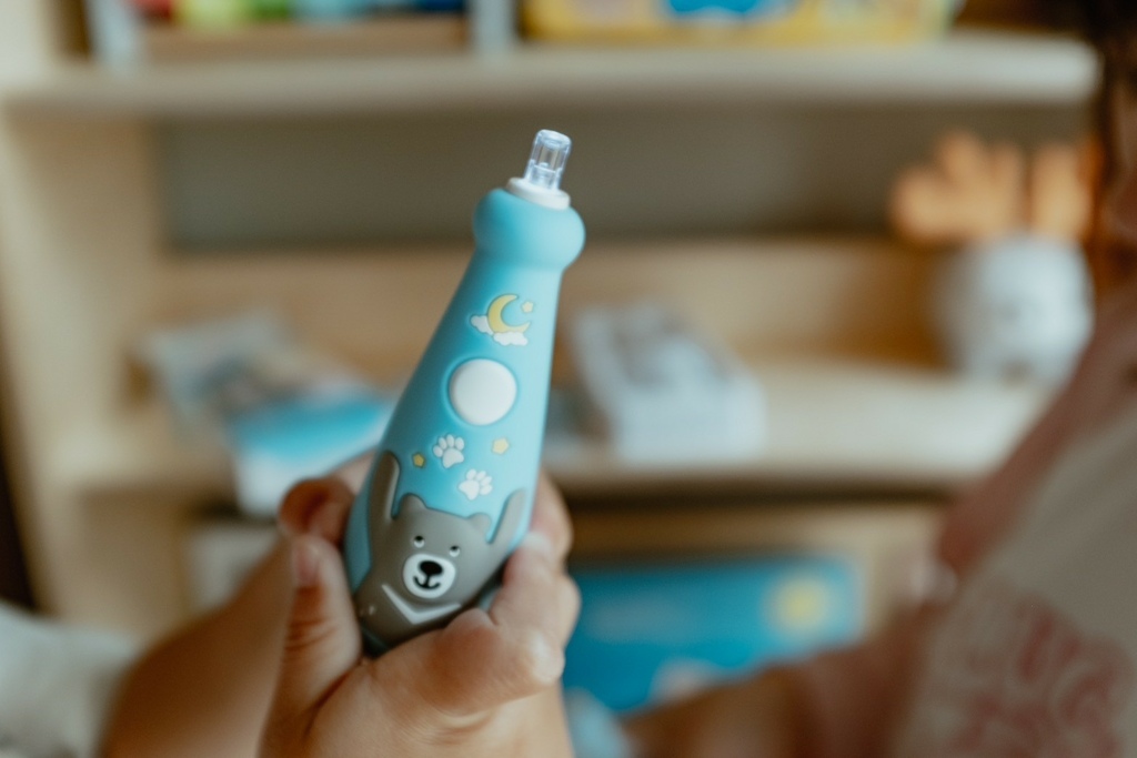 \ 媽媽先帶著他使用看看,感受震動的強度 /