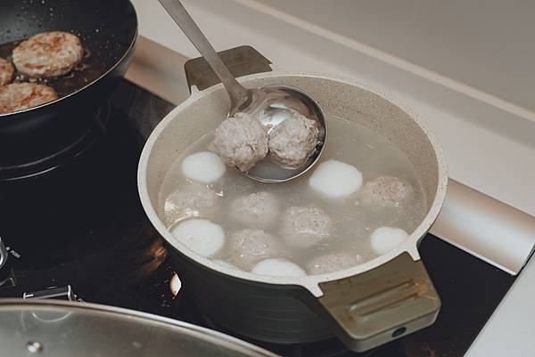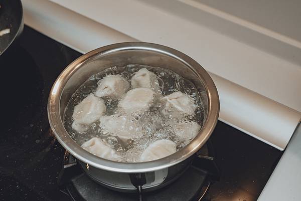 1. 燒一鍋滾水,加入少許鹽,水餃不會沾黏。