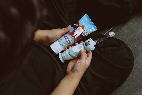 牙膏的水果口味也讓他不抗拒刷牙,睡前流程超順利!