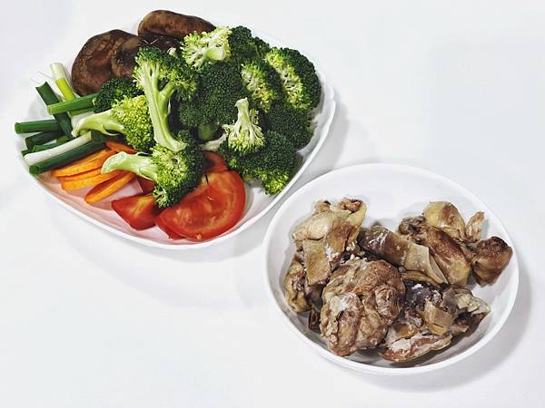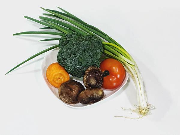先加青蔥、香菇、牛番茄、紅蘿蔔