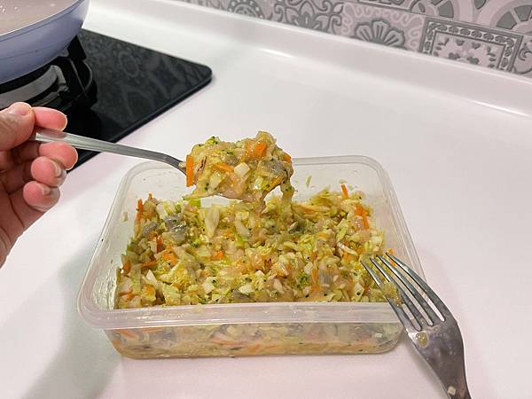 最後分享『蝦仁雞肉蔬菜餅』的成品照