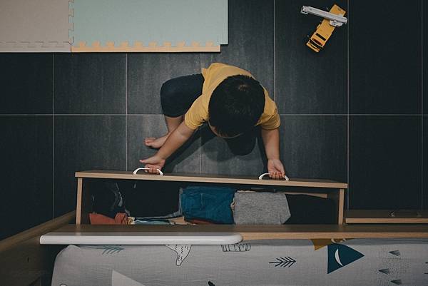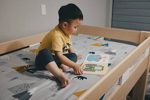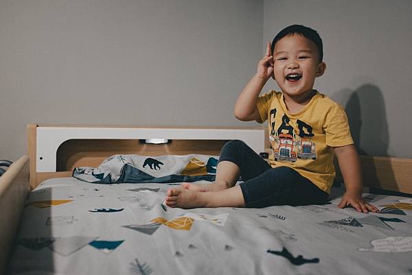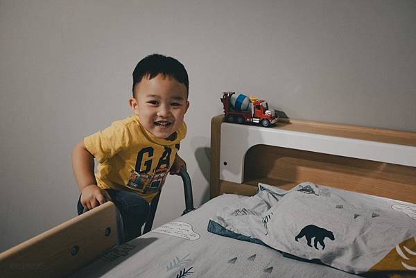 買了成長雙人床之後他變得很獨立喔!
